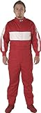 | ✚✚✚ G-Force 4380SMLRD GF 505 Red Small Triple Layer Racing Suit This is G-Force's most popular suit available in an SFI-5 rating. G-Force goes above and beyond what you've come to expect from an entry-level multi-layer suit. This suit comes with standard epaulets, belt with loops, matching nomex cuffs, arm and leg stripes, and a large chest billboard with contrasting piping. The pyrovatex outer layer of this suit is available in attractive red, black, or blue. All with white stripes across the chest and down the arms and legs. All seams are safety stitched to help limit seam failure. The interior of the 505 suit is lined with the world renowned coolquilt liner. Dry = cool and this liner keeps you dry. The built in abzorb-a-line draws the moisture from the body and keeps the driver's body temperature down. Never before, has your average weekend racer been able to so easily afford a suit with a TPP near 30. The days of a racer pinching pennies on his driver suits are over. This suit is available in a 1 or 2 piece (jacket and pants).